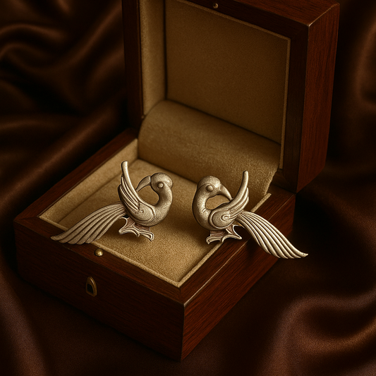 Noor – Premium German Silver Peacock Stud Earrings by DAYERA